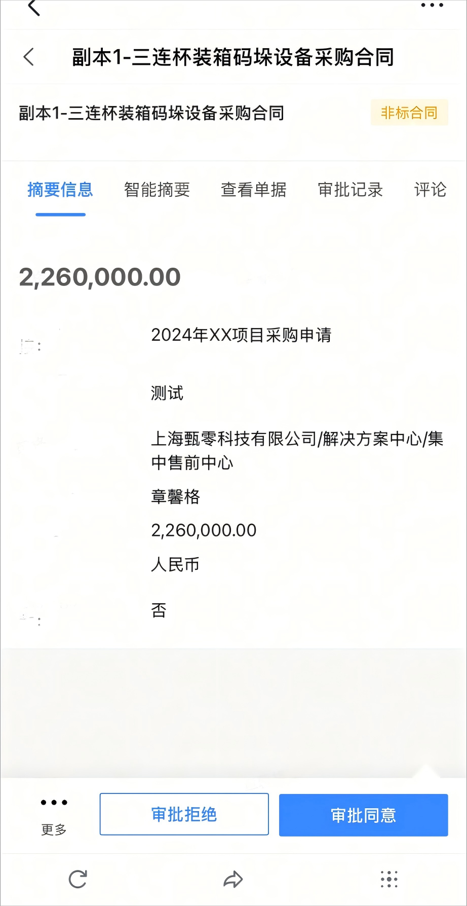 3. 点击待办详情界面,可无缝对接合同审批详情界面,完成审批。