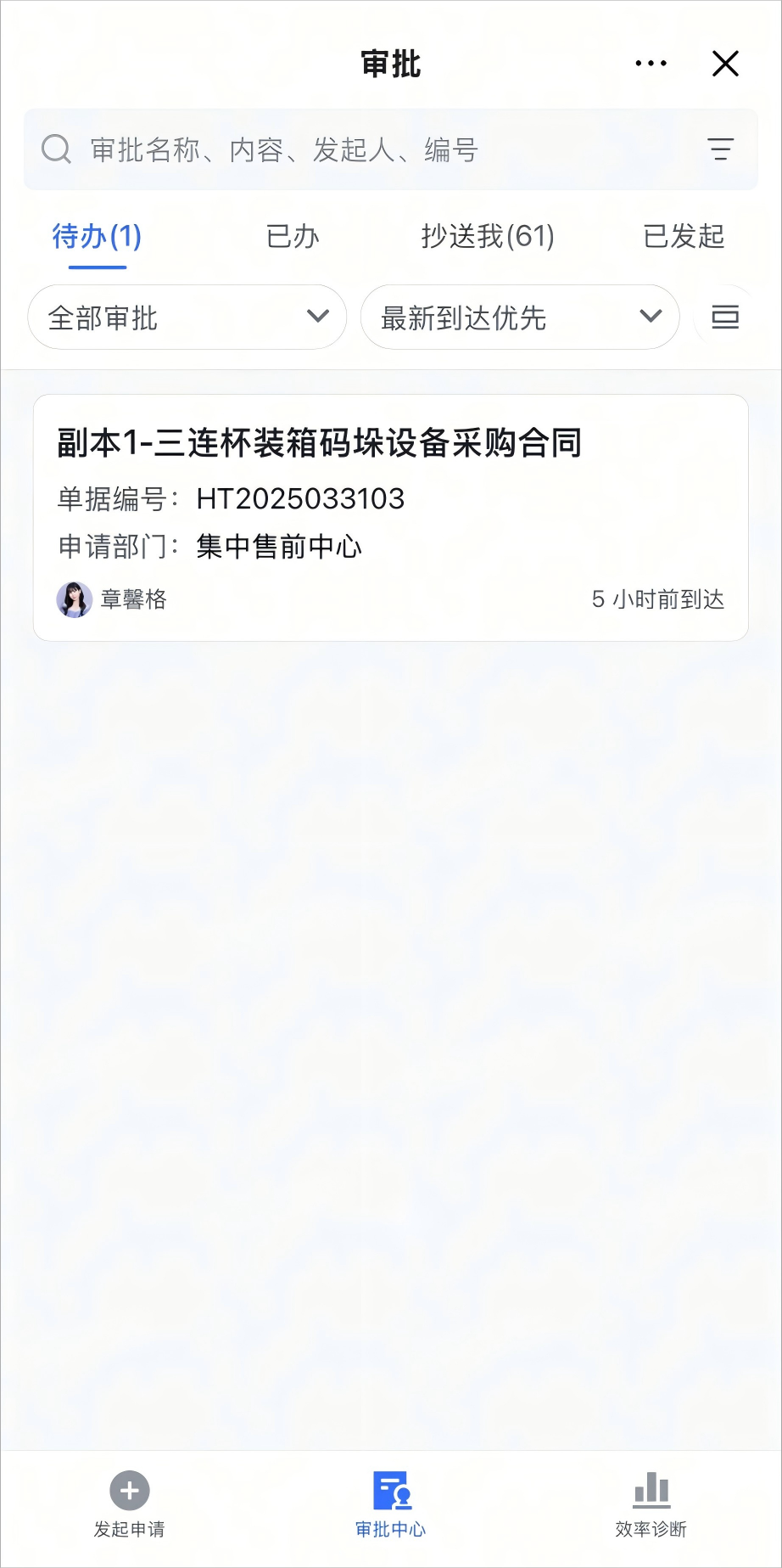 2. 飞书审批作为统一待办入口,可在待办列表中查询合同审批任务。