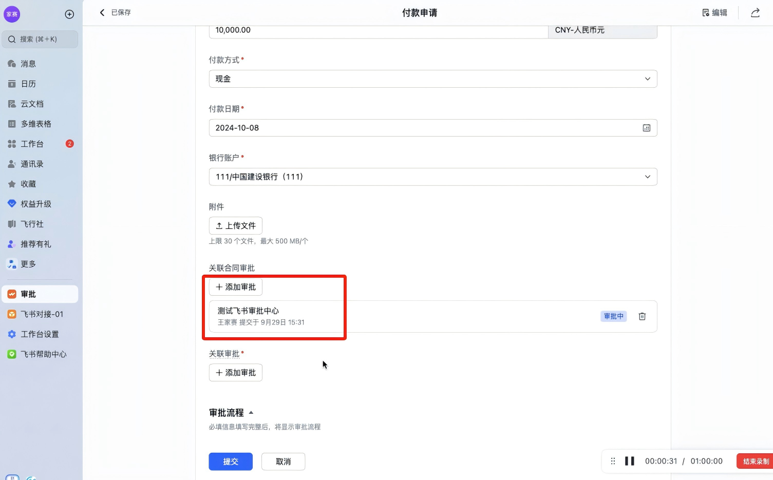 对接飞书审批前置流程,合同审批更有效