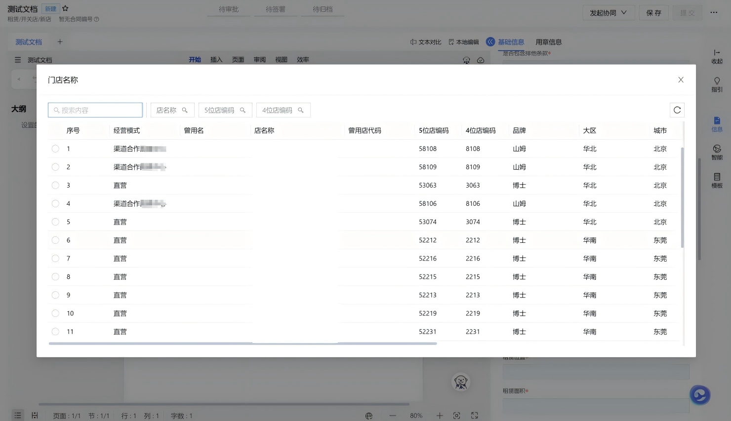 比如多维表格里详细记录的门店台账,包含门店名称、门店代码、品牌、大区等;项目台账,其中包含着项目的各类关键信息,像项目的进度、预算、责任人等;物料信息,涵盖了物料的名称、规格、数量、价格等内容,这些都能够作为合同的关联信息被使用。可使合同与相关业务数据建立紧密联系,为合同管理和业务流程提供更为全面、准确的信息支持。