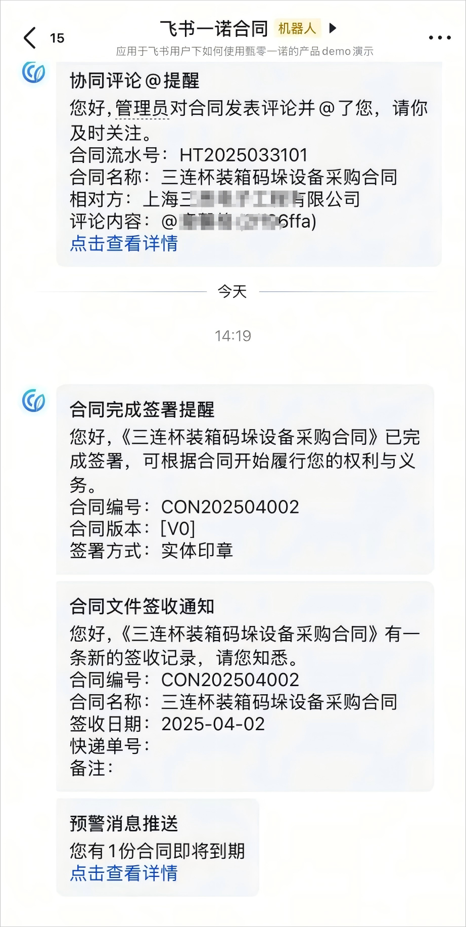 机器人实时推送,合同履行跟踪不再难
